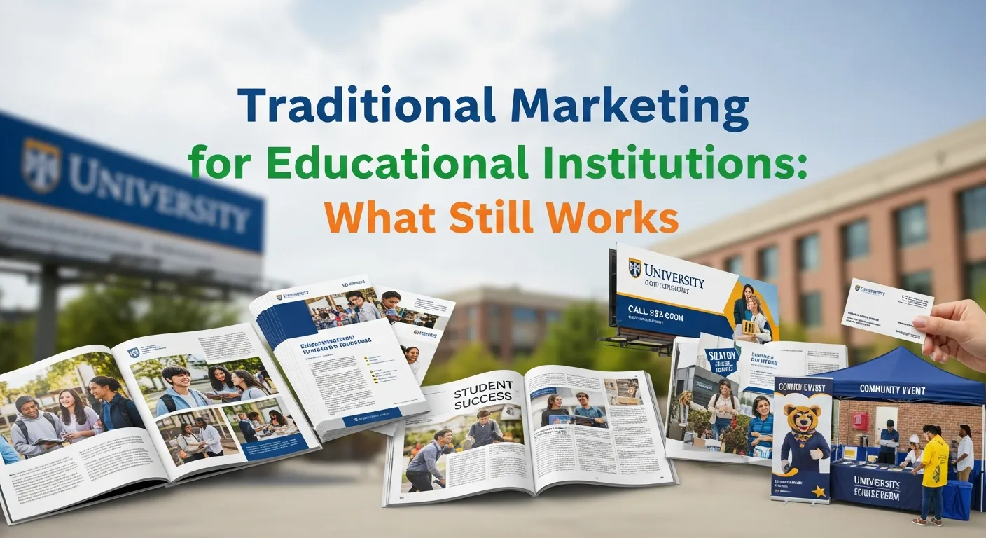 Traditional marketing remains essential for educational institutions, especially locally. Brochures, outdoor ads, events, alumni advocacy, and sponsorships build trust, credibility, and community connections. Combined with digital channels, it creates a multi-channel strategy that maximizes reach, engagement, and measurable results through QR codes, promo codes, and staff feedback.